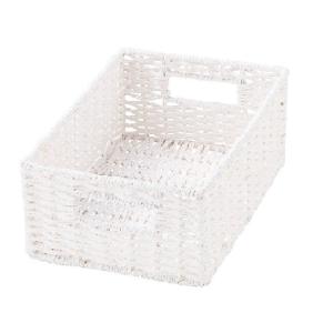 ペーパーバスケットCH−403 ホワイト●市販のカラーボックスに対応したナチュラルなバスケットです。市販のカラーボックス(40cm幅)1段の中に4個入れられるサイズ(クォーターサイズ)です。スタッキング可能なので、他のサイズと重ねてお好みの形で使いいただく事が可能です。手前に取っ手が付いているので、引き出しやすい。《注意事項》一つ一つ手で作られたハンドメイド製品なので、形やサイズ・ゆがみなどに若干の個体差が生じます。カラーホワイトサイズ(約)幅18×奥行26×高さ10cm材質ペーパー生産国中国関連キーワード: 収納用品 小物収納 収納ボックス 収納バスケット かご カゴ ナチュラル おしゃれ