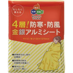 軽量コンパクトなアルミシートです。金色は熱を吸収しやすく、銀色は熱を反射しやすい性質があります。寒冷時は熱(太陽光)を吸収しやすい金色を表面に、炎天下では熱を反射しやすい銀色を表面にしてご使用ください。