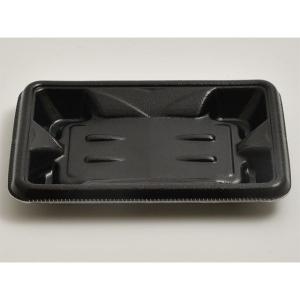 揚げ物に最適な電子レンジ対応の惣菜容器。水濡れ防止加工付きで、水滴が発生しても端に流れ、外側に漏れにくい形状。※蓋は別売り。