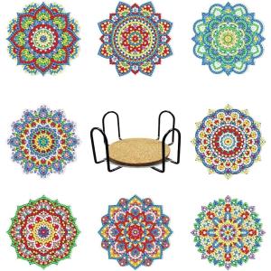 ダイヤモンドアート キット コースター 8枚セット ビーズアート 手芸 大人 子供 初心者 簡単 (カラフル) 【4571697380769】
