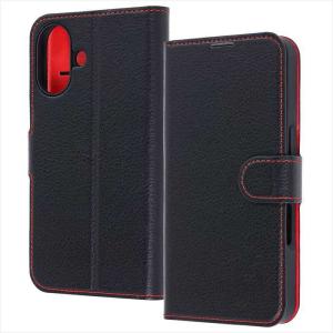【送料無料】iPhone 17 手帳型レザーケース シンプル マグネット ブラック/レッド Ray Out レイアウト