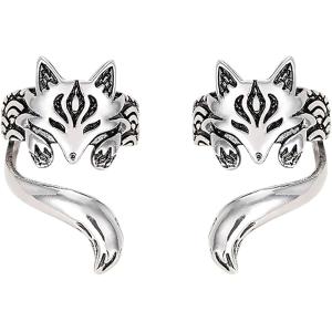 イヤーカフ 狐 イヤリング 左右ペア セット シルバー ノンホールピアス キツネ (シルバー, 10mmx10mm(全長:20mm)) 【4573659311828】