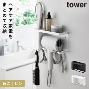 壁付けドライヤー&ヘアーアイロンホルダー タワー トレー付き 山崎実業 tower ドライヤー 壁掛け ホルダー ドライヤーホルダー おしゃれ モノトーン ホワイト 【4903208102544】