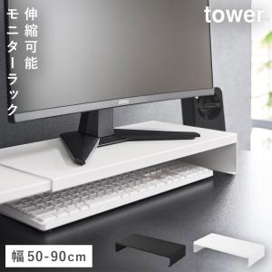 伸縮ゲーミングモニターラック タワー 山崎実業 tower モニター台 50cm モニターラック 卓上 モニター 置き台 おしゃれ モノトーン ホワイト ブラック 10563 10 【4903208105637】