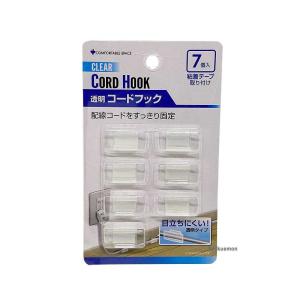 配線コードをすっきり固定透明コードフック7個入 粘着テープ取り付け1個サイズ:約幅2.5×高さ1.2×奥行0.8cm材質:スチロール樹脂