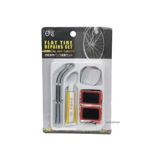 自転車用パンク修理セットタイヤ脱着金具2本ゴムのり(5ml)虫ゴム1ケパッチ5ケ紙やすり1枚