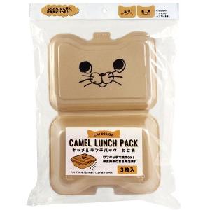 ランチパック キャメル ねこ柄 18.3×13.5×高さ6.6cm 3枚入 [柄指定不可] (100円ショップ 100円均一 100均一 100均) 【4978446033585】