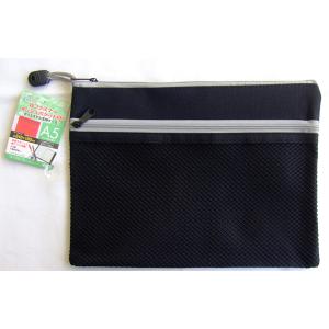 ●品名・Wファスナーメッシュポケット付!ポリエステルケースA5